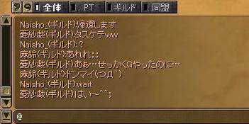 何か言ってます。近くに居るのは知っていましたが、どーやら人の獲物を横取りする気のよーです(コナクテイイYO)。まぁいいでしょう。知らない奴だったら許せませんが、ギルメンですし偽善者のNaisho_さんとしては、ここはスルーということにしときましょう。